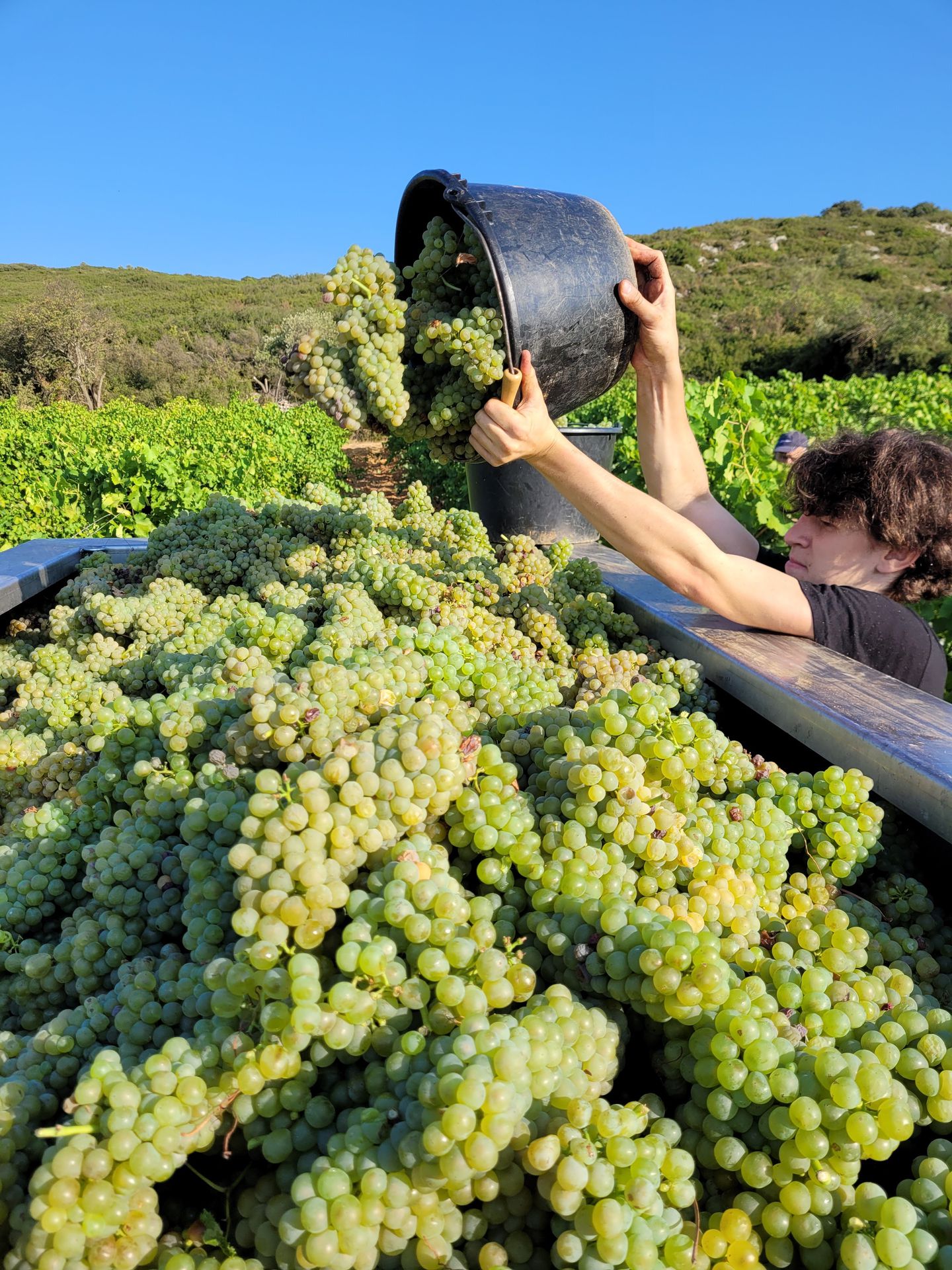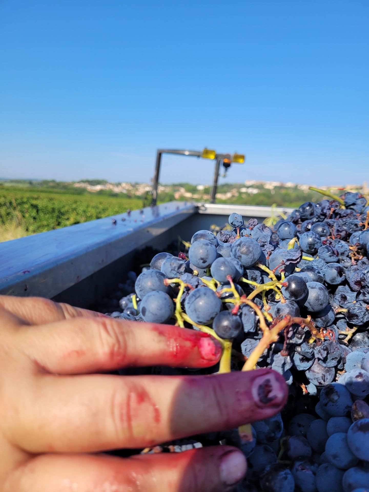De oogst van 2022 is de vroegste die we ooit gehad hebben op het domein! Op 16 Augustus hebben we de witte geoogst en vanaf toen hebben we elke dag behalve op zondagen geoogst. Alle druiven zijn nu binnen behalve de Grenache en Mourvèdre. Door de twee en een halve maand bijzonder heet weer waren we ongerust voor onze wijnstokken. Zouden ze voldoende weerstand bieden aan de verandering van het klimaat ? Enkele jonge wijnstokken hebben het wat moeilijk gehad en de oudere stonden er heel mooi bij. Misterie ....