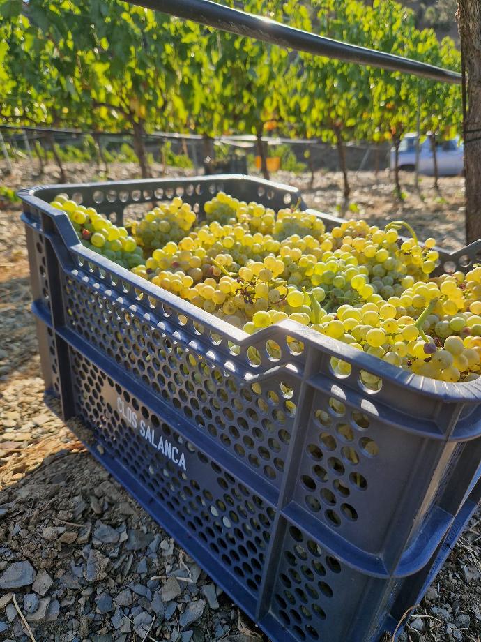 7 September · Day 9 ! 2 days away from the end of the harvest in the Priorat.This year is marked by its precocity. We never picked so early starting with our Syrah on 25th August. We luckily had some spells of water at the right time and the vines seemed to have programmed themselves on survival mode. Growing a small canopy to maintain its precious reserve of water, bearing fewer and smaller bunches per vine but almost perfectly distributed. We could feel the pressure of the heat as we were harvesting and the vines being thankful for being liberated of their fruits. A perfect time for a smooth delivery of beautiful berries.Another point for 2022 is the incredible quality of the fruit. I felt no need to go through the grapes on the sorting table, it was immaculate.