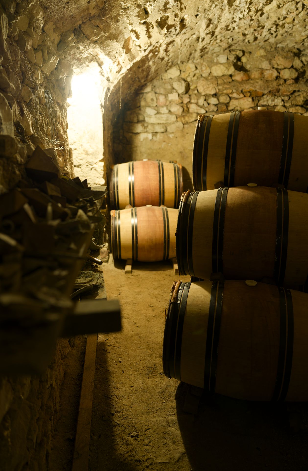 - Rijping in eiken houten vaten van een van de top Chateau's in Bordeaux. Enkel vaten die al een aantal jaren gebruikt zijn.